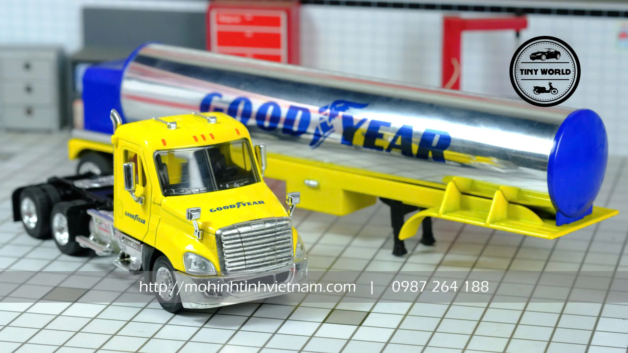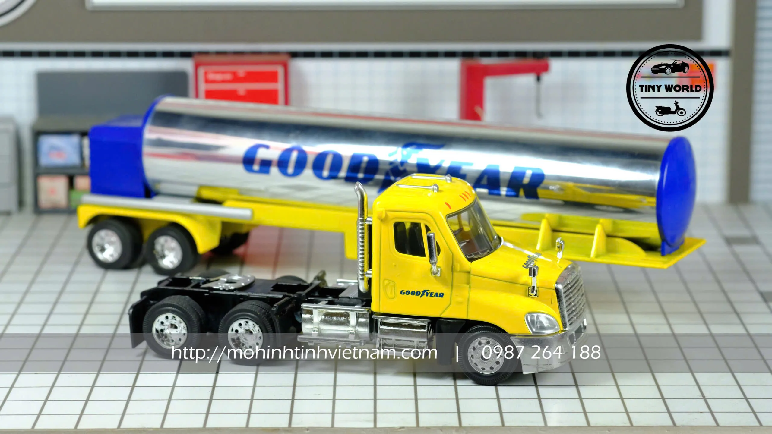 MÔ HÌNH XE BỒN CHỞ CHẤT LỎNG GOODYEAR (VÀNG) 1:64 DIECAST