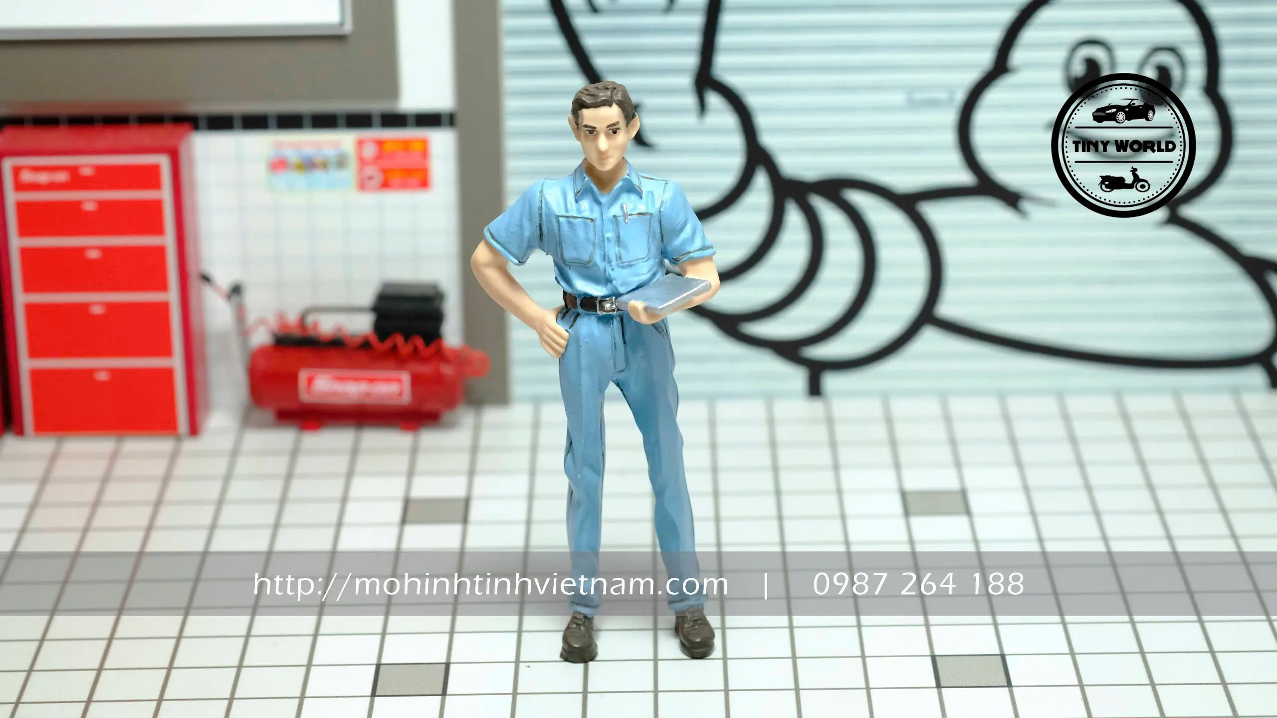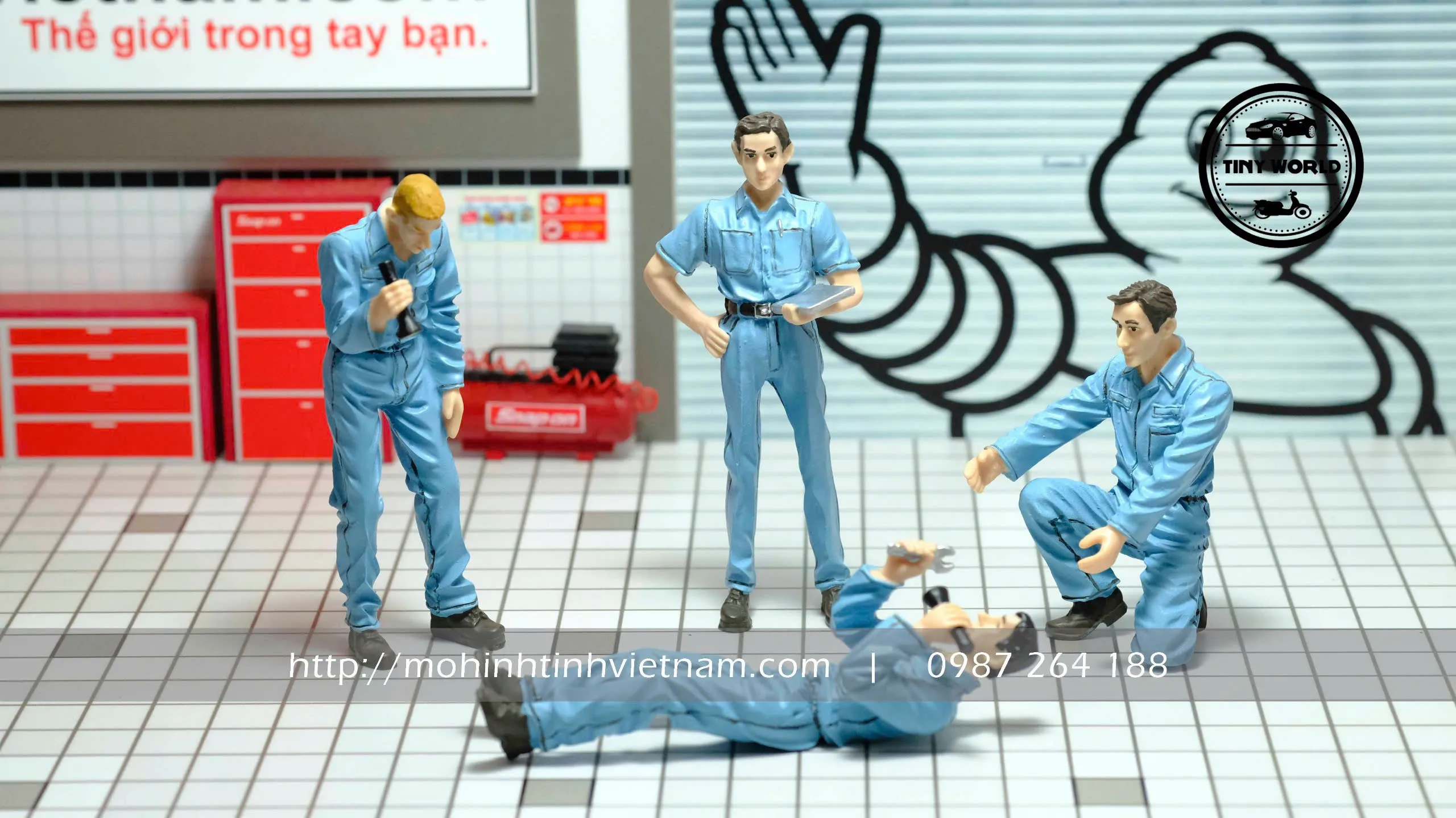MÔ HÌNH BỘ 4 FIGURE SỬA XE (XANH) 1:18 DIECAST MODEL