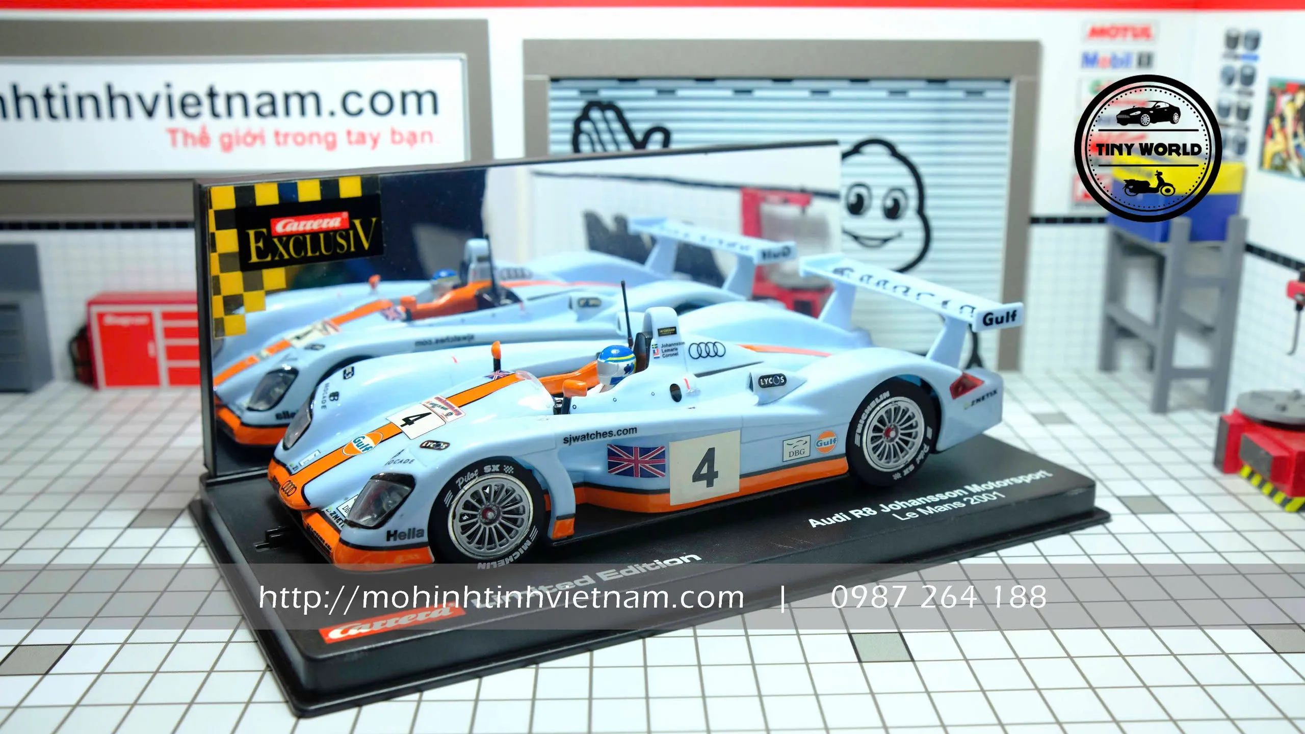 MÔ HÌNH Ô TÔ AUDI FOR R8 JOHANSSON MOTORSPORT LE MANS 2001 (XANH) 1:24 CARRERA