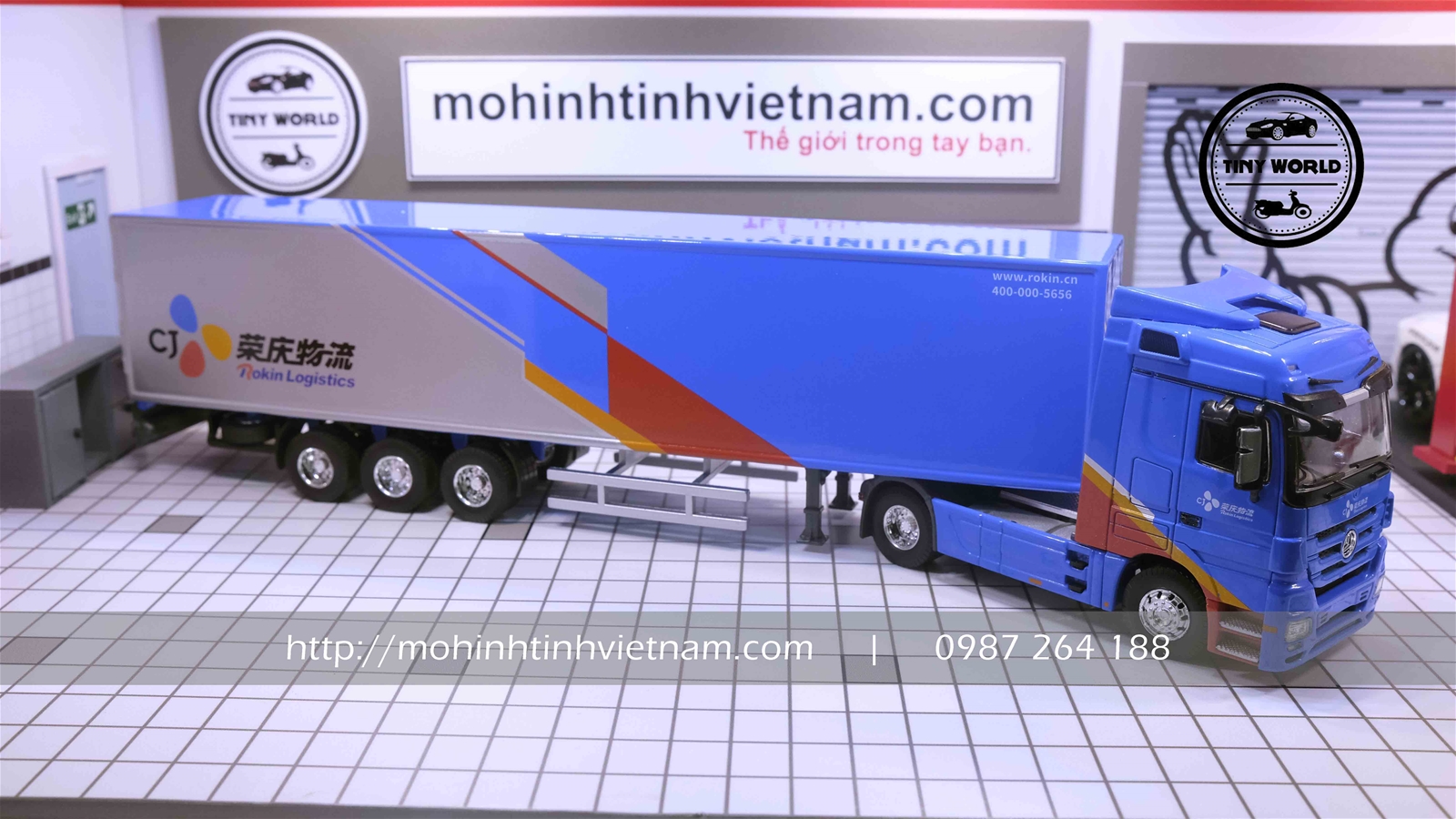 MÔ HÌNH CONTAINER MERCEDES-BENZ ROKIN LOGISTICS (XANH) 1:50 DEALER