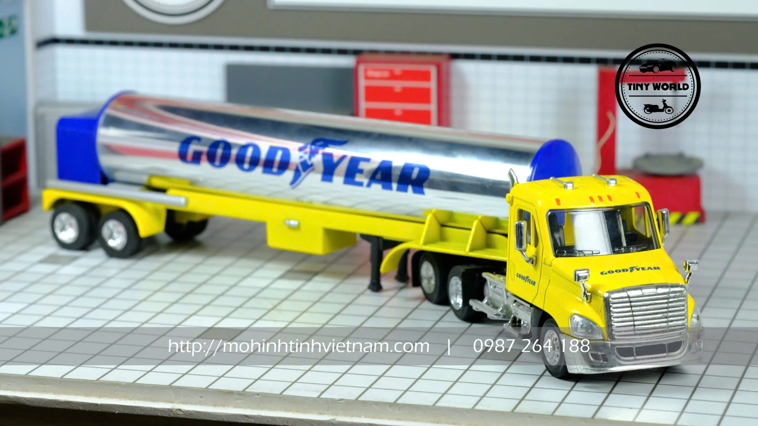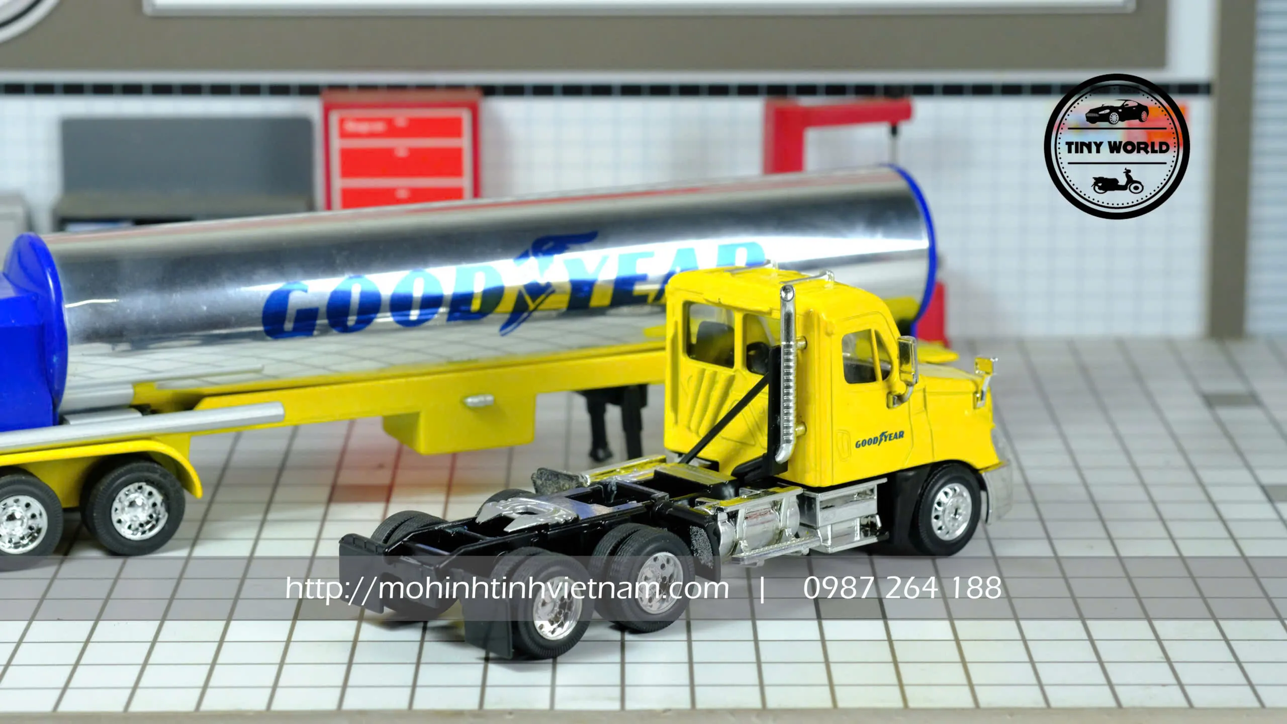 MÔ HÌNH XE BỒN CHỞ CHẤT LỎNG GOODYEAR (VÀNG) 1:64 DIECAST
